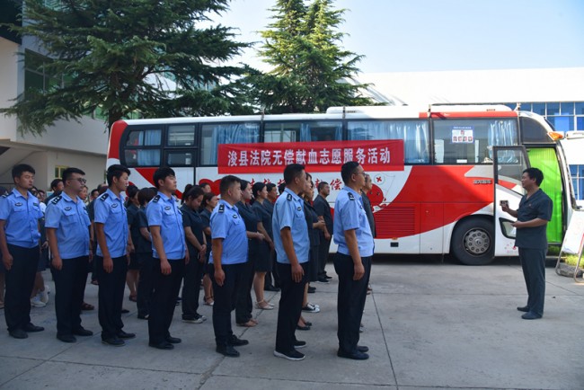 8月15日,浚县法院组织干警开展无偿献血志愿服务活动,传递爱心正能量,彰显责任法院形象。