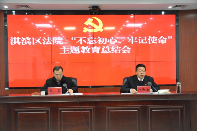 许院长表示,下步工作中,淇滨区法院将以习近平新时代中国特色社会主义思想为指导,坚持问题导向、目标导向和成果导向相统一,持续抓好学习教育、调查研究、检视问题和整改落实,不断巩固扩大主题教育成果。一是继续学习,确保学有所获。集中研讨认真学,讲好党课带头学,红色教育深入学,同一党日共同学。进一步坚定理想信念,筑牢思想根基。二是深入调研,确保研有所得。调研选题务求“准” ,调研过程务求“细”, 调研成果务求“实”。立足司法本职,聚焦群众关心的法院审判执行难等问题,组织党员干部深入基层一线走访调研,将调研成果转化为具体工作,有效打通人民群众最关心的热点堵点问题。三是严格整改,确保改有所效。认真梳理检视问题,找准问题抓好专项整治。对照学习研讨、党章党规等认真检视问题,建立整改清单,立足司法职能,明确整改措施,确保落实落地。四是真抓实干,确保干有所成。沉入基层转作风,纾解民困暖民心,四大共建促平安。先后组织党员干警进村(社区)走访,认真听取群众意见建议,及时解决群众所忧所盼难题。