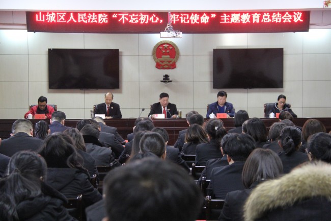 1月19日下午,山城区法院召开“不忘初心、牢记使命”主题教育总结会,传达贯彻中央、省委、市委、区委主题教育总结会议精神,对该院主题教育开展情况进行总结,对主题教育巩固拓展成果工作进行部署。院党组书记、代院长韩明文出席会议并讲话,院党组副书记、副院长卢国平主持会议,区第一巡回指导组组长李军、指导组成员和法院全体干警参加了会议。