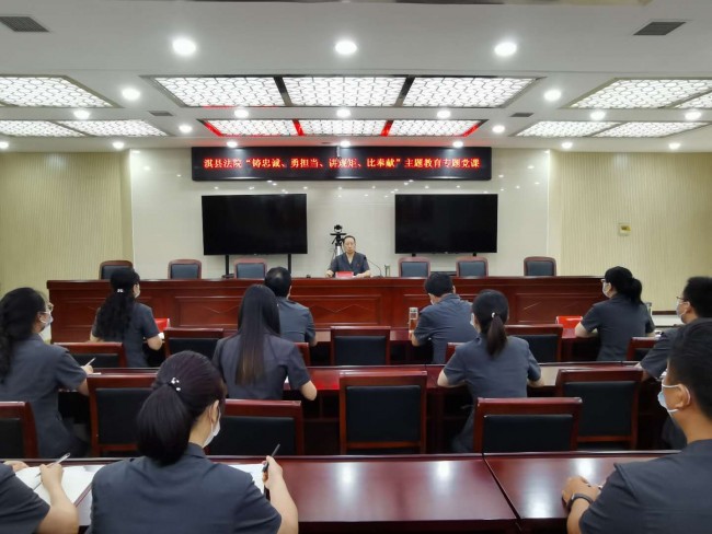 为深入开展“铸忠诚、勇担当、讲规矩、比奉献”主题教育活动,努力建设一支政治过硬、信念坚定、执法为民、敢于当担、清正廉洁的高素质法院队伍,7月21日下午,淇县法院党组书记、院长苗青以“忆入党初心 明审判职责 争当司法为民先锋”为题,为全院干警上了一堂生动的主题教育专题党课。
