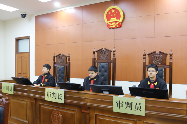 进入法庭,讲解员从法庭的功能布局,到法徽、法槌、法袍的设计和象征意义,用通俗易懂的语言一一讲解,让同学们直观感受司法的严谨和庄重。最受期待的模拟法庭环节中,同学们分别扮演法官、公诉人、辩护人、被告人、法警、书记员等角色,围绕一起校园故意伤害案件,同学们按照庭审流程完成法庭调查、法庭辩论以及最后陈述等环节。