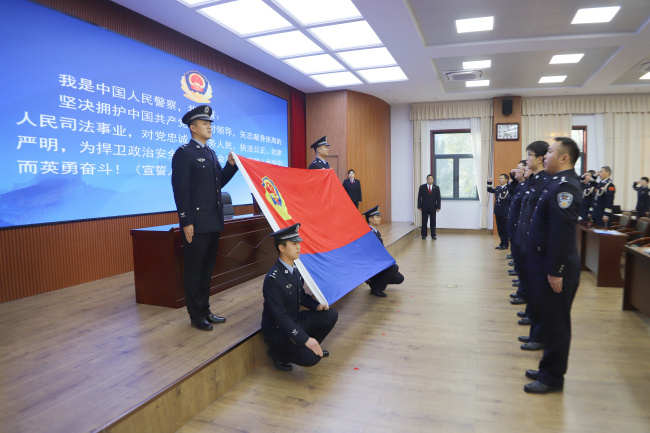 警旗猎猎,誓言铿锵;天平熠熠,使命在肩。在第六个中国人民警察节来临之际,为进一步凝聚警心、提振士气,增强司法警察的职业荣誉感、归属感和责任感,鹤壁市中级人民法院隆重举行新入警司法警察授衔仪式系列活动,以庄严的仪式感致敬藏蓝忠诚,激励全体司法警察以更加昂扬的姿态护航司法征程。