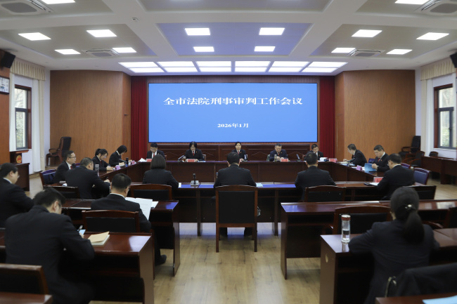 会议指出,2025年,全市刑事审判条线始终坚持党对法院工作的绝对领导,牢固树立以人民为中心的发展思想,忠诚履行刑事审判职责,依法严惩严重暴力犯罪,常态化推进扫黑除恶斗争,纵深开展反腐败斗争,精准打击电信网络诈骗等多发高发及新类型犯罪,切实维护了国家安全、社会安定、人民安宁,各项工作取得显著成效。