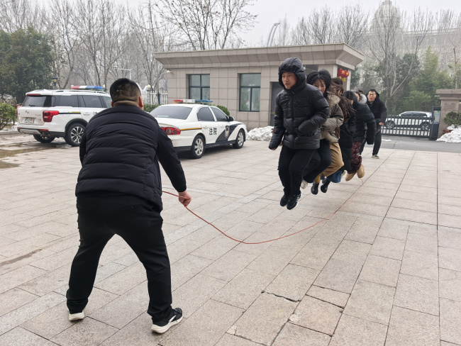 老鹰抓小鸡,融合趣味性、团队协作,增强集体凝聚力,有效释放干警工作压力。