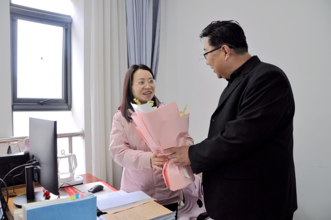 为了表达对这些坚守岗位女干警的敬意和感谢,院领导带着一束束精心挑选的鲜花和一张张充满温情的祝福卡片,走进了各个加班岗位。“大家辛苦了,三八节快乐!”每到一处,院领导都亲手将鲜花送到女干警手中,亲切地与她们交谈,感谢她们为法院工作的辛勤付出。接过鲜花的女干警们脸上洋溢着幸福的笑容,纷纷表示这是她们收到的最特别、最温暖的节日礼物。