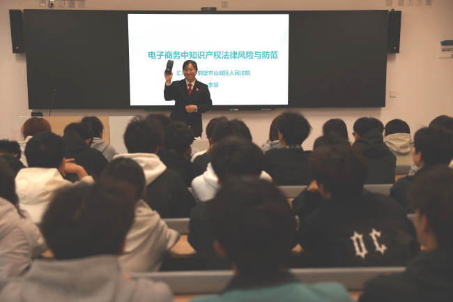 活动现场,法官通过展示案件中的封存实物,使同学们直观感受到知识产权侵权行为的常见类型,并结合学生认知特点与生活实际,用通俗易懂的语言,围绕知识产权内涵、权利类型、日常风险及维权途径、抗辩事由等核心问题展开讲解,通过鲜活的典型案例,深入剖析“盗图”“售假”“傍名牌”等常见违法情形,让同学们清晰认识到知识产权保护与生活、学习息息相关,全方位提升学生知识产权自我保护能力与合法合规创新能力。