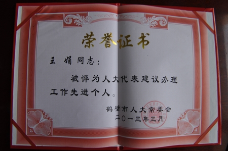 在3月7日召开的市九届人大优秀代表暨建议办理先进单位先进个人表彰会上,市中级人民法院办公室被评为市人大代表建议办理工作先进单位,王娟被评为代表建议办理先进个人.市法院领导长期以来高度重视人大代表建议的办理工作,以提高办理质量为重点,求实效,狠抓落实,较好的完成了代表建议的办理工作。5年来,我院共办理人大代表建议46件,办理结果均取得代表的满意。