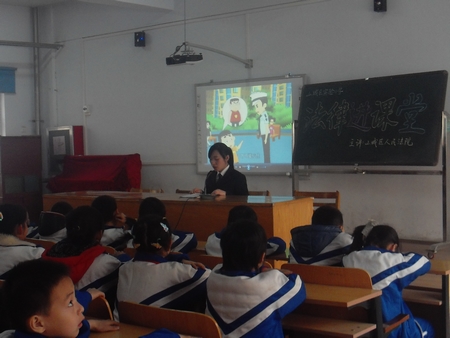 此次法律课主要是让学生们明白了法律是什么,了解法律与我们有什么关系,介绍了宪法、义务教育法、道路交通安全法、未成年人保护法、预防未成年人犯罪法等几部与小学生们密切相关的法律,同时告诉大家不但要遵纪守法,遵守学校的规章制度,遵守《小学生行为守则》,还要学会如何预防和防止发生在我们身边的不法侵害,学会用法律武器来保护自己。