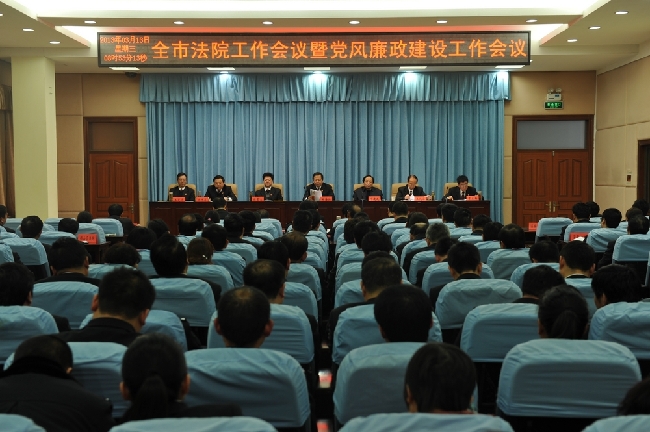 3月13日上午,全市法院工作会议暨党风廉政建设工作会议在市法院召开。市法院党组书记、院长曲海滨,市纪委常务副书记叶建民出席会议并讲话,市法院机关全体干警、县区法院领导班子和部分获奖代表参加会议。会议由市法院党组副书记、常务副院长侯慧生主持。