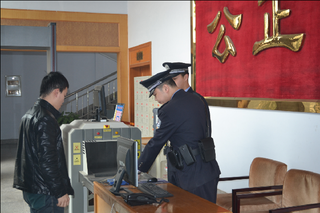二是强化安检,排除隐患。全队法警轮流参加安检值班,严格安检规定,队领导现场参与安检,现场解决疑难复杂问题,排查消除各种安全隐患;