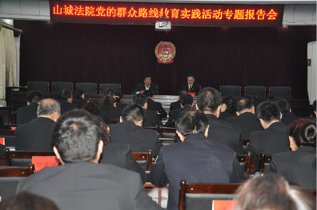 4月25日下午,山城法院召开“党的群众路线专题教育实践活动”专题报告会。会议邀请全国劳动模范、鹤壁市山城区鹿楼乡故县村党委书记、村委会主任唐巨林作报告。会议由山城法院党组书记、院长吕文涛主持。