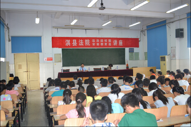 为进一步提高在校学生的法制观念和法律意识,预防和减少未成年人犯罪,同时教导广大在校学生在即将到来的暑假中遵纪守法,运用法律知识保护自己的权益,度过一个安全快乐的暑假,7月4日下午,淇县法院党组成员、政治处王毅宏主任和行政庭刘俊英庭长一行来到淇县第五中学,开展“送法进校园,安全教育篇”活动,为同学们送上了一堂生动活泼、意义深刻的法制课。