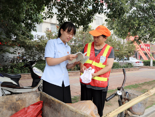 通过交谈,志愿者们更加深刻了解到环卫工人们每天早出晚归在高温环境下坚持工作的不易。志愿者们也细心提醒他们在工作中既要防止中暑也要当心来往车辆,注意自身安全。志愿者们还向环卫工人赠送了鹤壁法院法官以真实案例编写的《法官说法》宣传手册以及便民联系卡。