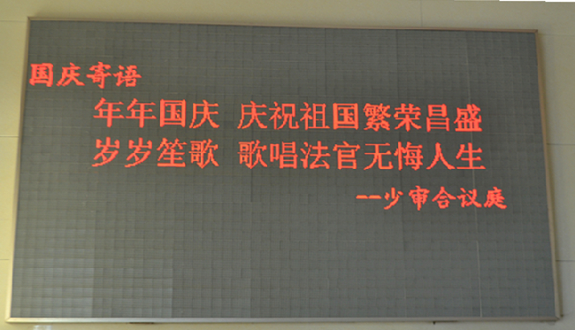 少审合议庭国庆寄语:年年国庆,庆祝祖国繁荣昌盛,岁岁笙歌,歌唱法官无悔人生。