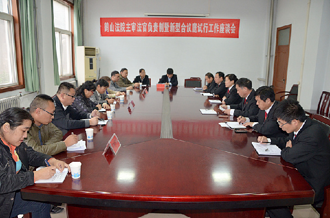 10月29日,鹤山区法院举行主审法官负责制暨新型合议庭试行工作座谈会,鹤山法院党组书记、院长李晓晔亲自主持座谈会,听取部分区人大代表、政协委员、律师、法律工作者对此项工作的意见和建议,主管民事审判的副院长,两个人民法庭、民一庭、民二庭负责人参加了座谈会。