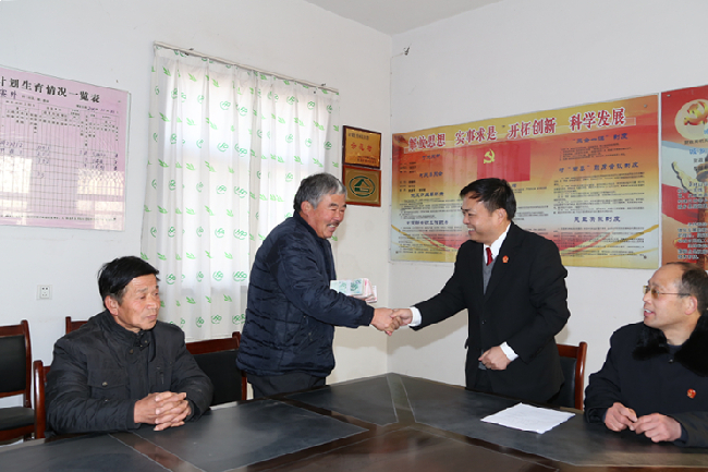 1月8日上午,浚县法院院长王贺曦将工资款8万余元送到浚县善堂镇寨外村村民单某某等手中。单某某激动地说:“感谢法院为俺讨回了工资,俺终于能够安心的过个好年了。”