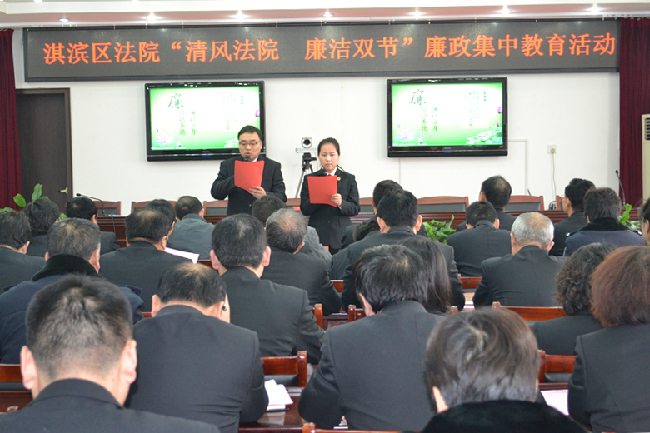 1月29日下午,淇滨区法院组织开展了“清风法院 廉洁双节”廉政集中教育活动。市中院监察室主任张文峰、区纪委常委赵春杰受邀到院指导工作。