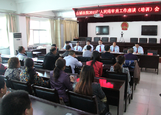 为进一步推进人民陪审员工作,彰显司法民主,2015年4月28日上午,山城区人民法院在院三楼视频会议室召开2015年人民陪审员工作座谈会。山城法院班子成员、部门负责人和邀请的40多位陪审员代表以及媒体记者朋友参加了本次会议。会议由山城法院党组副书记、副院长卢国平主持。