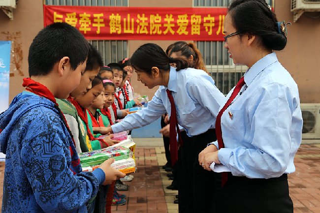 随着当天关爱留守儿童活动的开展,也拉开了今年鹤山区法院“与爱牵手 关爱留守儿童”活动的序幕。鹤山区法院将继续通过向留守儿童送温暖、赠送普法口袋书、开展法律讲座、辅导作业、做游戏等形式,关爱留守儿童的健康成长,推动关爱活动取得更大成效。