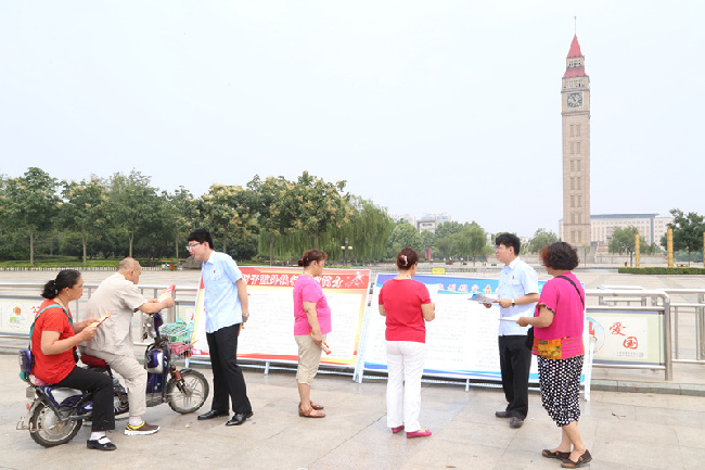 为宣传省、市法院严格减刑、假释、暂予监外执行工作新举措,提升工作新水平,根据省院统一部署,落实鹤壁中院方案要求,6月26日,该院在流动人口密集的新世纪广场进行了减刑、假释、暂予监外工作集中宣传。