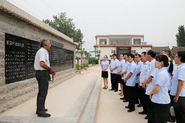 随后,贾立新副院长一行来到了浚县爱国教育基地——浚县卫贤镇裴营村。上世纪40年代,面对日军侵略,裴营村群众组织成立自卫队保家自卫,自卫队多次重创日军,引起日军不满,对裴营村进行了大屠杀。在裴营村抗战纪念壁前,两级法院干警认真倾听当地居民为干警讲述裴营村村民自卫抗战的英勇事迹,对村民的抗战事迹感到由衷的敬佩。