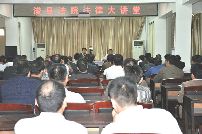 10月8日下午,浚县法院举办法律大讲堂,该院党组书记、院长韩明文为全县70多家企业的老板上打击和处置非法集资专题法制课。