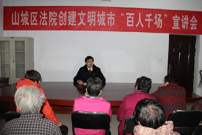 11月17日上午9点,山城区人民法院组织干警前往向阳社区开展“百人千场”宣讲活动。