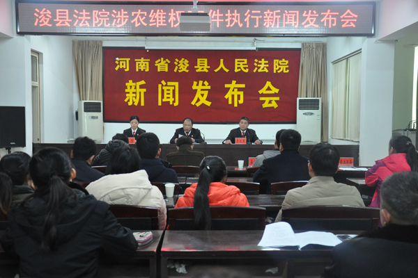12月9日下午,浚县法院召开涉农维权案件执行新闻发布会,《河南法制报》、《鹤壁日报》、浚县电视台、浚县人民广播电视台、掌上浚县等新闻媒体记者参加了发布会。