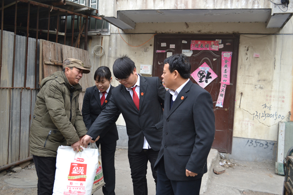 2016年1月29日春节前夕,淇滨区法院开展春节慰问走访困难群众活动,由该院副院长许勤生、李辛龙兵分两路,带领干警为辖区困难群众送去米、面、油等生活用品,为他们送去了温暖和祝福。