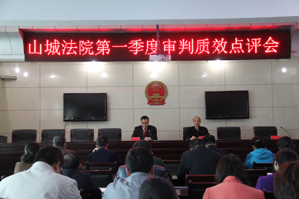 2016年4月8日下午,山城区法院召开2016年第一季度审判质效点评会。该院副院长卢国平通报了山城区法院第一季度的审判质效工作情况,着重分析了各部门在质效评估工作中的短板问题,同时,提出要求各部门负责人加强对审判工作的管理,提高审判工作的质量效率。随后,两名部门负责人对本部门存在的结案率低等问题作了表态发言。