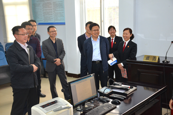 视察期间,山城区法院党组书记、院长吕文涛首先就近两年法庭收结案件情况、多元化矛盾化解机制及“立审执”一体化工作机制的运行模式及取得的成效向陈兆法书记进行了汇报。随后,陈兆法书记一行实地查看了法庭规范化建设、软硬件设施、信息化建设等基本情况,并观看了法庭庭审同步直播演示,对汤河法庭采取的便民利民举措及科技化庭审模式给予了充分肯定。他指出,法庭工作要坚持群众路线,不断探索矛盾化解新机制,不断减轻群众诉讼负担,拉近与群众的距离。山城区法院在法庭推行的一系列便民举措,用心服务群众,效果显著,为辖区平安建设工作做出了贡献。