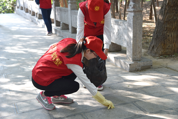 在景区志愿服务队分为两组,一组开展法制宣传和法律咨询等法律服务活动,现场解答游客的法律咨询,维护景区秩序。另一组志愿者在景区进行捡拾垃圾、打扫卫生、环境清洁、文明旅游主题宣传等活动。
