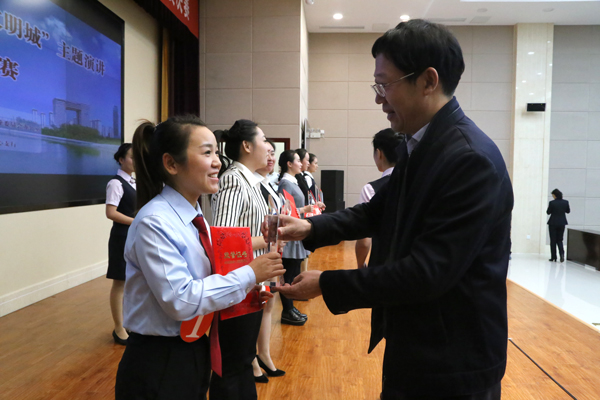 为不断提升干警思想道德素质和文明程度,鹤壁中院积极组织干警参加中国人民银行鹤壁市中心支行联合市文明办、共青团鹤壁市委、市直工委开展“诚信伴我行•共创文明城”演讲比赛。经过层层选拔,鹤壁中院干警悦少燕共有其他10名选手进入了总决赛。