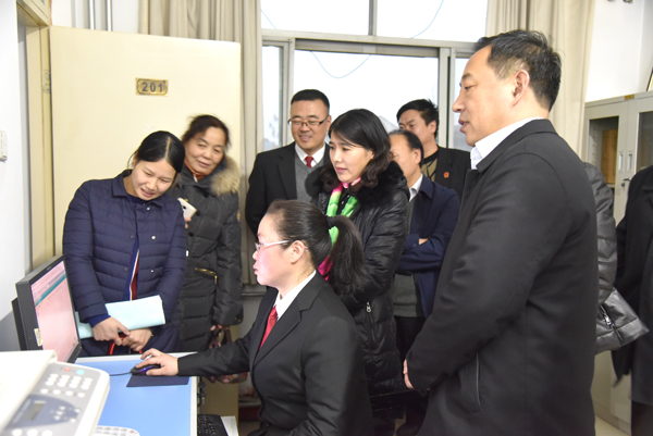 11月30日下午,以河南省档案局业务指导处处长翟霣远为组长的河南省档案信息化建设示范单位测评组,在省高院徐文杰科长、鹤壁市档案局局长刘高鹏、鹤壁中院办公室主任孙晓波等的陪同下,对浚县法院的档案信息化建设工作进行了综合测评。