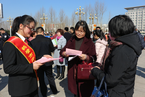 为宣传贯彻《中华人民共和国反家庭暴力法》,最大限度的预防和制止家庭暴力,3月6日,淇县法院组织10余名法官干警在朝歌广场开展《反家庭暴力法》宣传活动,号召群众运用文明方式解决家庭矛盾,增强反对家庭暴力的法律意识。
