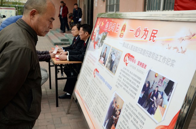 3月20日上午,鹤山区法院行政庭干警到中山办馨苑社区及二矿文化广场、菜市场深入开展法制宣传,大力推进依法行政。