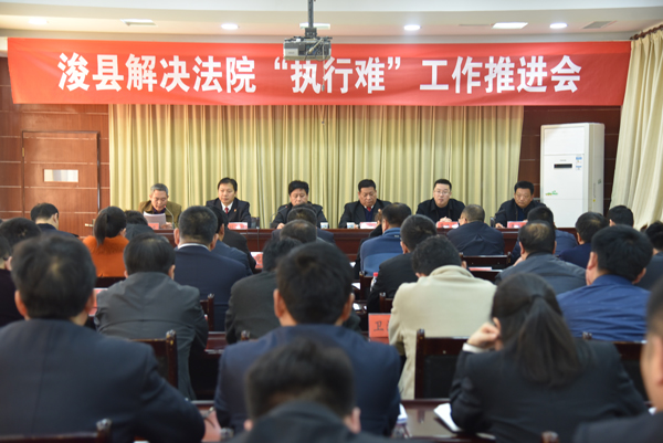 4月1日上午,浚县县委召开浚县解决法院“执行难”工作推进会。县委常委、政法委书记林大军到会并发表讲话,县法院院长韩明文,县检察院检察长刘波,县公安局局长华晓东出席会议,县发改委等30个执行联动机制成员单位负责人参加会议。