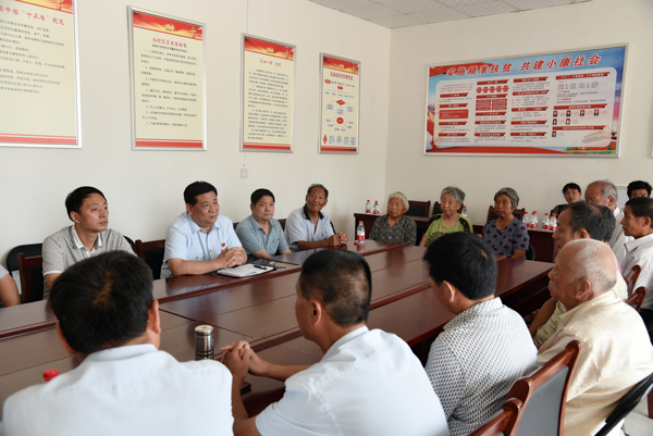 活动中,韩明文院长带领党组成员挨家挨户慰问贫困老党员,并召开党员座谈会。杨梁村驻村第一书记、包村干部及六十岁以上的老党员参加了座谈会。会上,韩院长首先对各位老党员能长期坚守基层、带领杨粱村村民共同脱贫致富表示敬意,并向老党员通报了法院近年来的工作情况。韩院长向老党员们承诺,法院的扶贫帮扶干警会竭尽所能解决贫困群众的实际困难,全力保证杨梁村贫困群众脱贫致富。