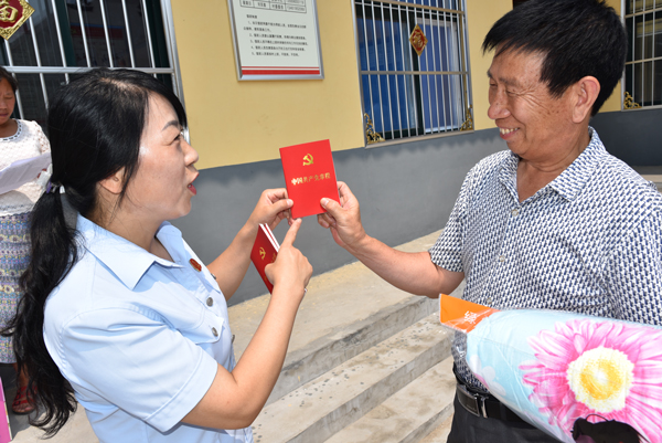 座谈会结束以后,浚县法院向杨梁村每个60岁以上老党员赠送了慰问品,并向老党员赠送党章。