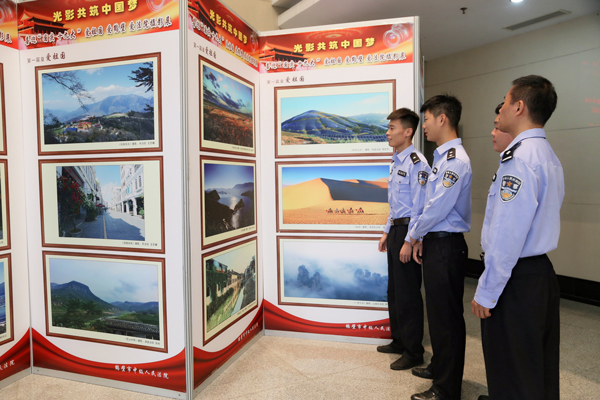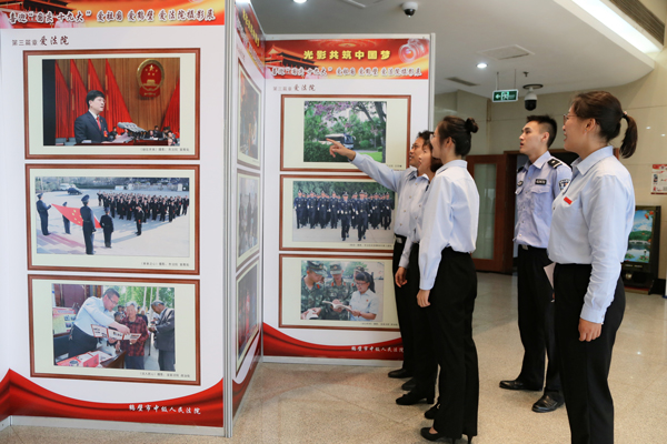 “这照片是我们院自己的干警拍的吗?”,9月30日,鹤壁中院一楼大厅的摄影作品展吸引了众多干警驻足观看。